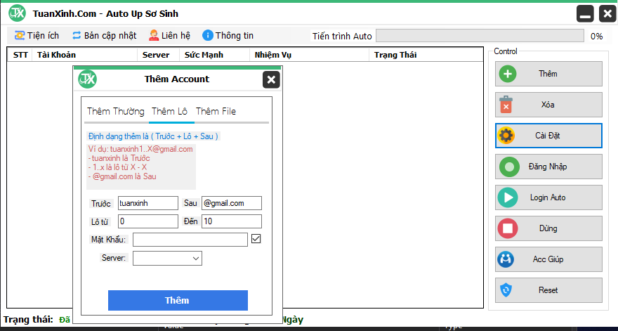 - Tự động tạo nhân vật, Up, Làm nv đến các mốc tuỳ chỉnh, Mượt