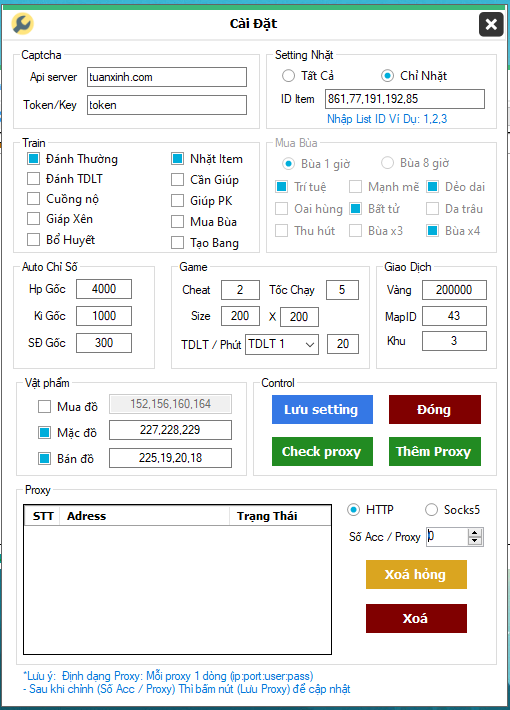 - Nếu nhập khu là 0 thì nó sẽ tìm khu ít người nhất để vào làm, Nhập chỉ định thì all acc sẽ chung khu