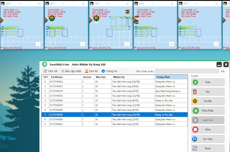 - Acc làm xong sẽ tự động qua luôn nhiệm vụ khác ko đợi chờ (Game cơ chế mới đợi rất mất thời gian)