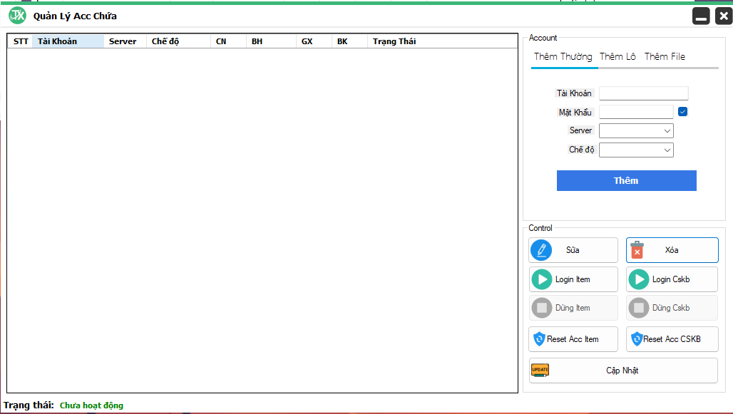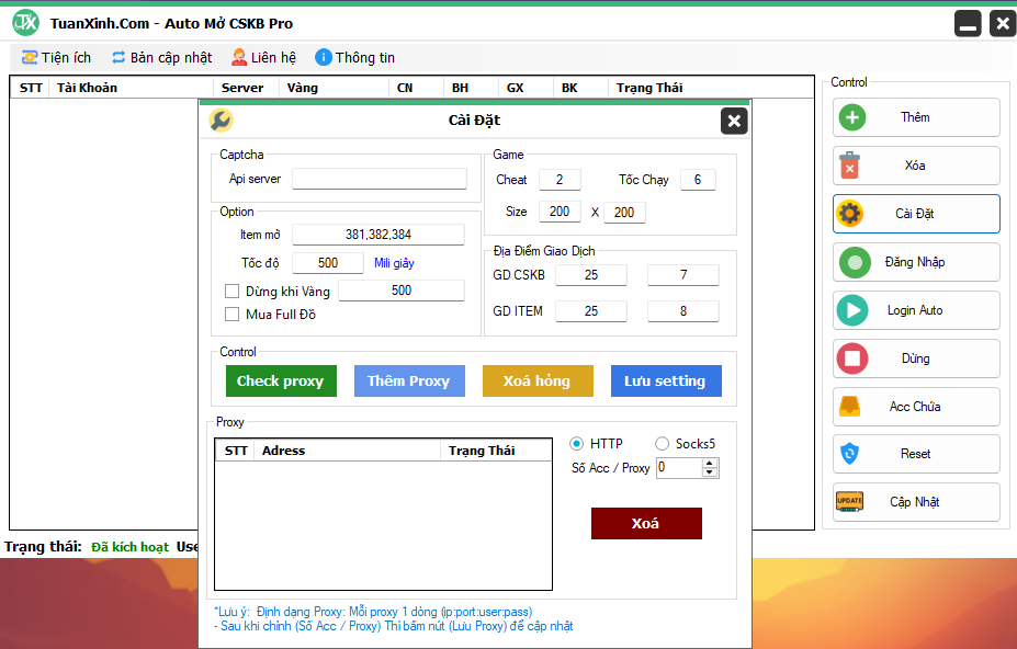 - Auto mở cskb, proxy, giao dịch item acc chứa, bơm cskb